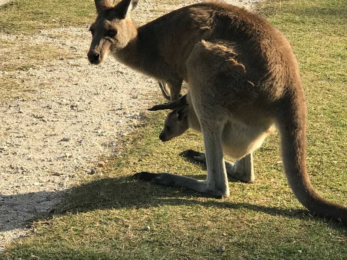 野生のカンガルーにも会えて、お腹には赤ちゃんも入ってました。