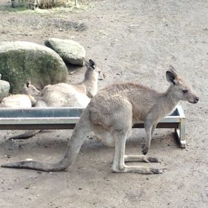 午前中、雨天だったため 午後2時過ぎにいきました。 雨上がりでしたが たくさんの人が来ていましたが コアラとの写真も5分ほど並んだだけで撮影できました。 1枚だけ自分のカメラで撮影していいとのことで撮影しましたが フラッシュ不可で逆光になり残念でした。 コアラとの写真撮影の近くと奥に行ったところでもコアラが沢山いて近場でユーカリの葉を食べているところが見れてよかったです。 また カンガルーと触れ合える広場があり 一緒に写真も撮ることができ 感激しました。(おなかの袋にも子供が入っていましたよ) 天気のせいだったのか 回り方が悪いのか 動物のショーとかがみれませんでしたが 大人でも十分に楽しむことができました