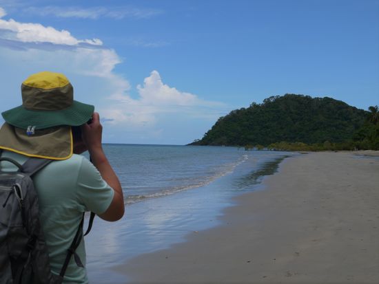 「ポートダグラス」の町散策。そして、「モスマン渓谷」から「デインツリーの森」と、蒸し暑いが澄んだ空気の中、熱帯雨林を巡り、目に見えないシャワーを浴びた気持ちです。ランチは脂身が少なくナイフで切りにくかったけど、ヘルシーなカンガルーステーキを。フィレ肉のようで美味しかったです。食後は、しばしケープトリビュレーションの砂浜で、ブレイクタイム。その後、希望者多数だったデインツリーアイスクリームを買うためにお店へ。「サワーソップ」「イェローサポーティ」「ココナッツ」が入った3種のカップアイス、とても美味しかった。そして、「アレクサンドラ展望地」は、とても奇麗で、デインツリー川の河口や、遠く「ポートダグラス」が見えました。