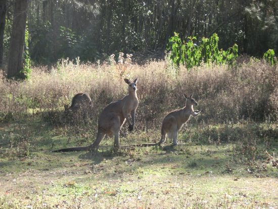食事をするところにポッサムがやってきます。その時、お腹から、赤ちゃんが落ちてしまいました。ツアーの人たちみんなで、ハラハラしながら、見守りました。無事にお母さんのところにもどりました。また、ロックワラビにえさをやるときもたくさんでてきてくれました。両親も楽しそうに餌やりをしました。