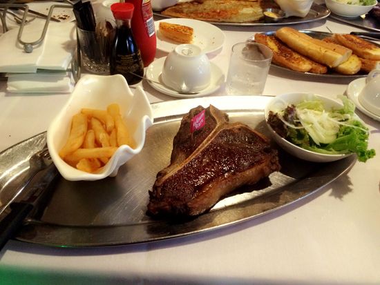 さてごはんは1ポンドステーキです!!肉肉しい肉。噛み応えあり、旨味あり。ザ・肉でした。僕は完食出来ましたが、女性の方には少し量が多いかもしれませんね。あとパン、フレンチフライとサラダ、カフェ、デザートがつきます。結構お腹一杯です。