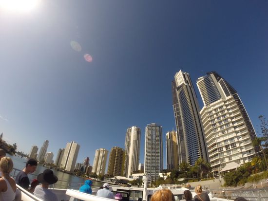 そして船着き場にいくと元気なオージーのキャプテンと、可愛らしいオージーガールが船に案内してくれて、合羽を着ていざ出発!