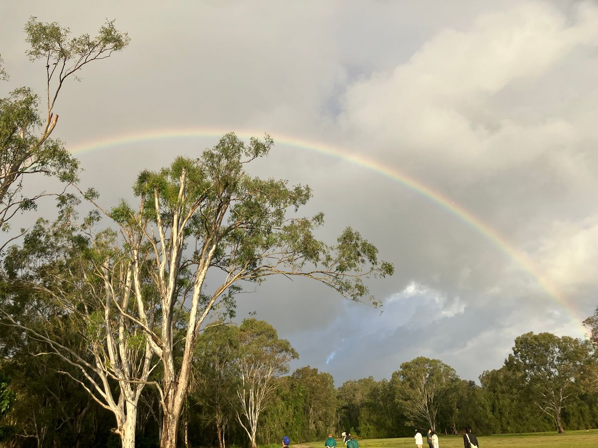 集合時間頃に雨が降り出しましたが、野生のコアラを探していると晴れ間が出てきれいな虹