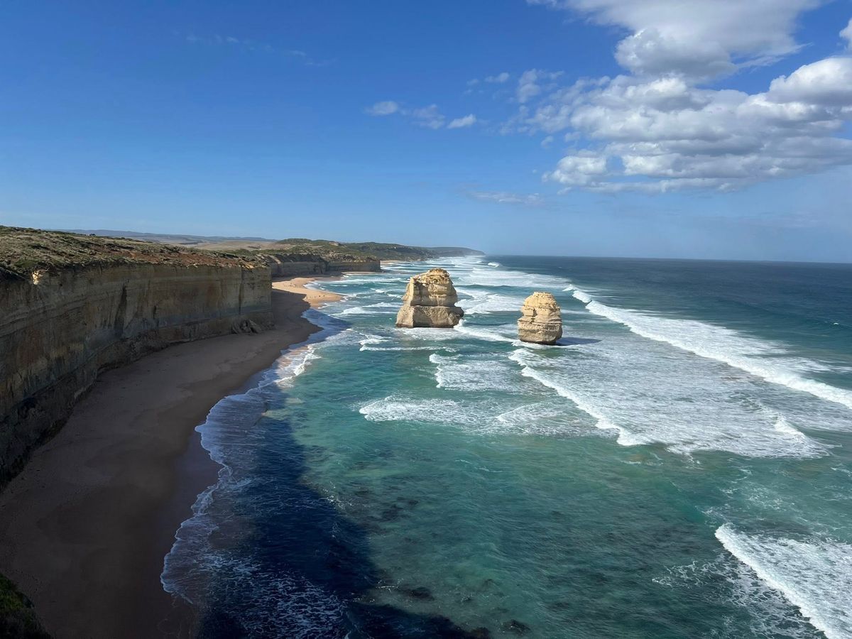 最初に絶景の海の12使徒の海岸に向かいます。浸食が激しくて下までは降りられませんが絶景が見られます。あとは退役軍人さんが作ったグレートオーシャンロードを走って海岸の街を巡ります。野良カンガルーや野良コアラが道端にいてオーストラリアらしい自然が楽しめます。