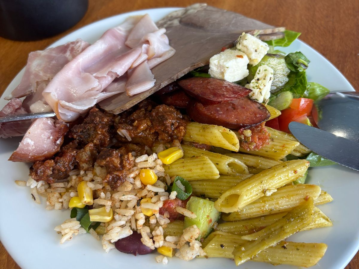 ご飯は洋食中心ではあるものの、中華やカレーも出ました。薄い味のときもありましたが、個人的にはどれも美味しかったです。量も十分すぎるほどあり、むしろ食べ過ぎないように気をつけていました。電子レンジはないですが、お湯はあるので、和食がどうしても必要な方はインスタント系のものを持参するといいのではないかと思います。