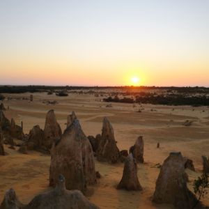 午後からスタートするツアーです。ガイドさんとの会話や車窓の眺めで楽しく過ごすことができました。夕方ピナクルスに到着し写真を撮ったり好きに回った後、綺麗なサンセットを見ました。