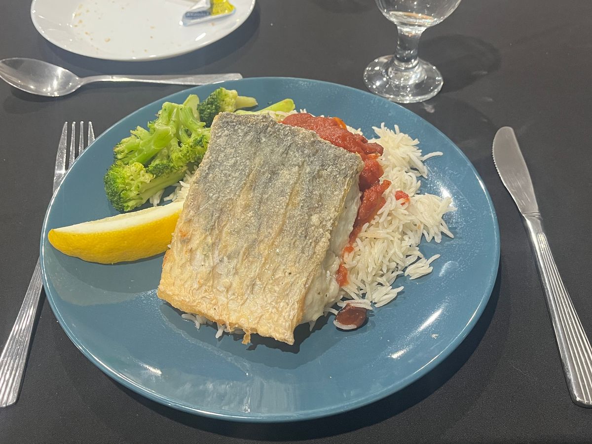 事前にバスでお魚かお肉か聞かれます。わたしはお魚を選びました。