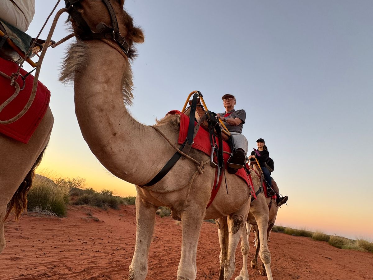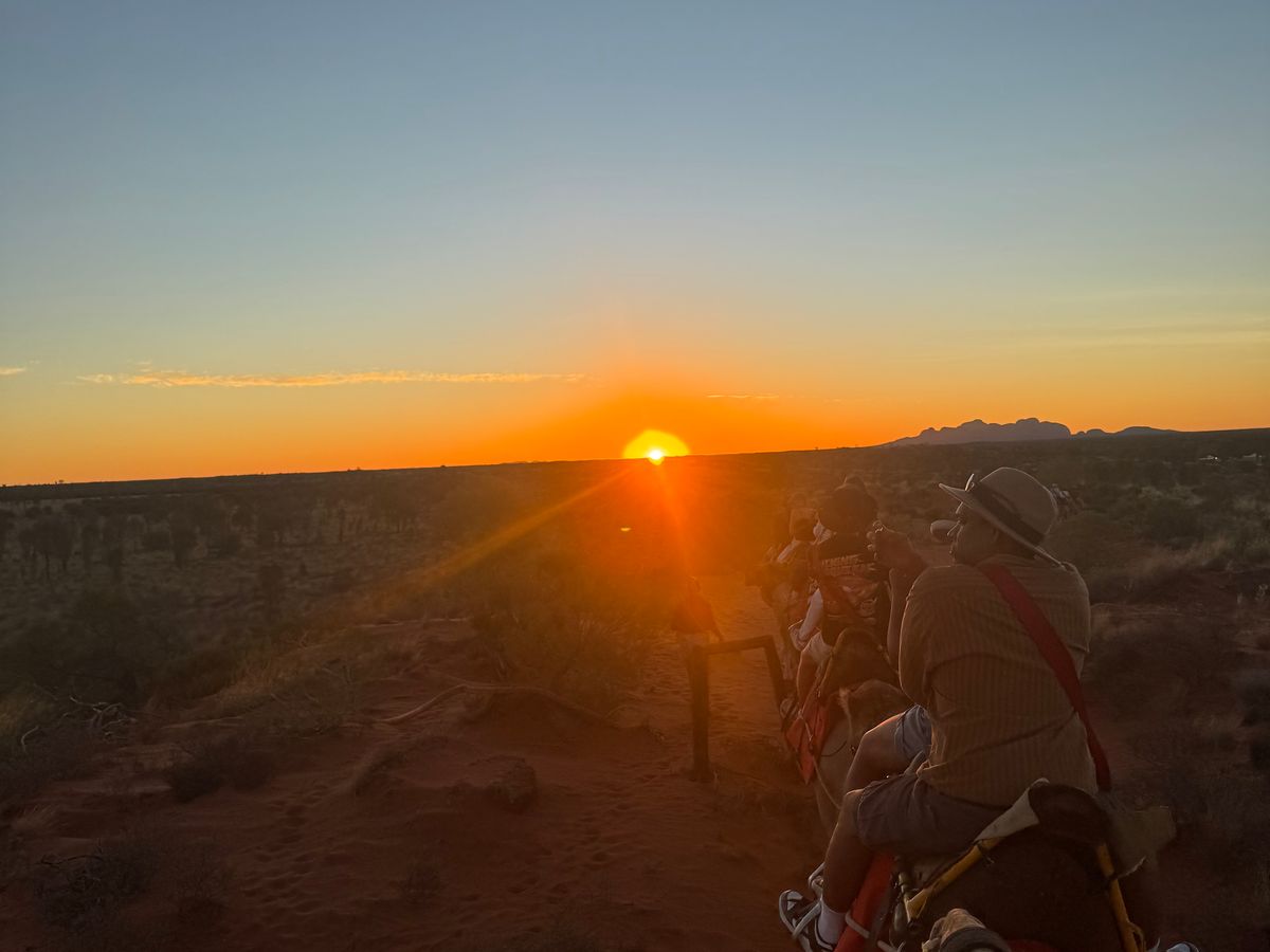暗闇の出発、ラクダの上からの朝焼け感動でした。朝日とウルルのコンストラストを是非体験して下さい。ラクダは優しいですよ🐪