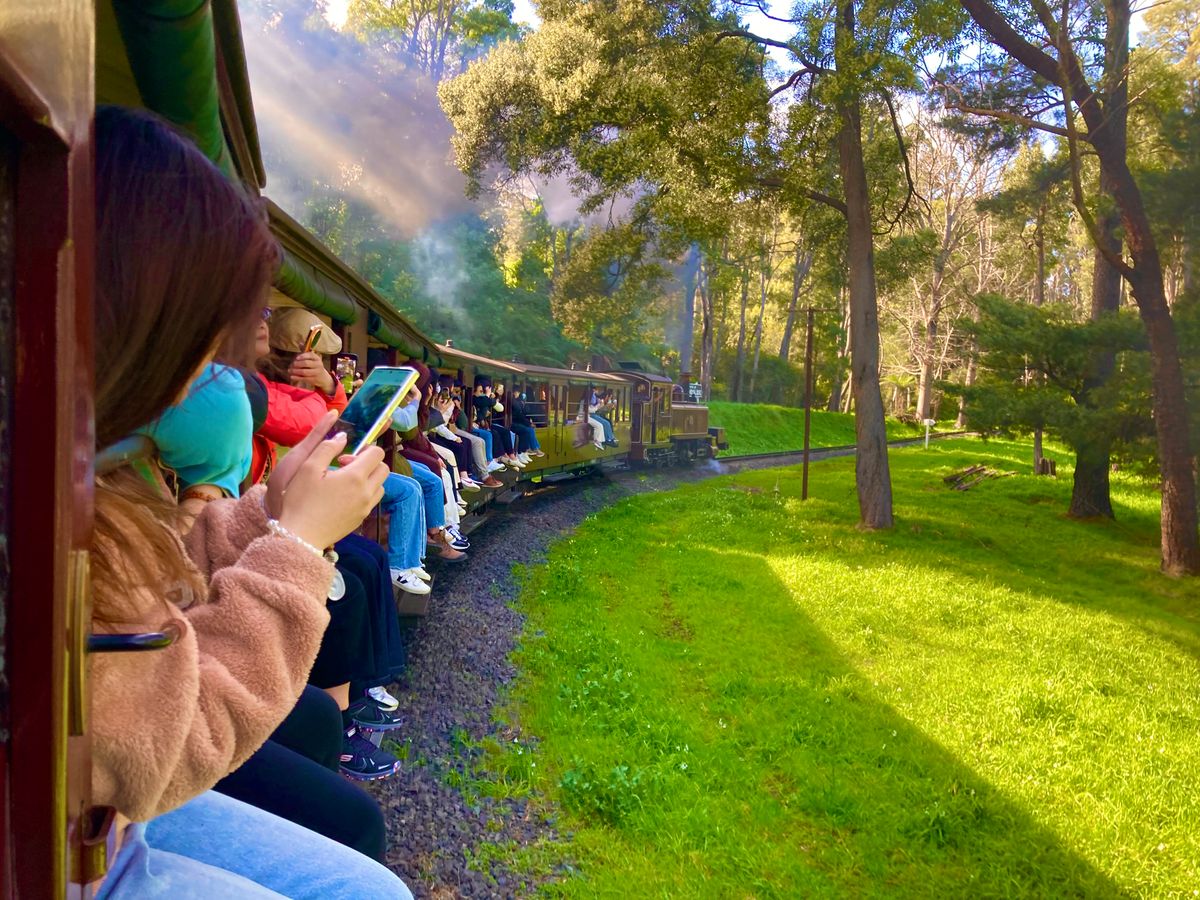 パッフィンビリー鉄道は、前日の強風の為30分程の乗車でしたが十分楽しめ、念願の車外に足を出し、風を感じ、綺麗な景色を楽しみながらの乗車体験はスペシャルでとてもハッピーでした