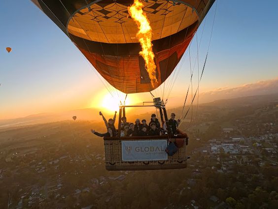 高層ビル群の上を飛ぶツアーに申し込みましたがコンディションが悪いとのことで、ヤラバレーを飛ぶツアーにチェンジ。眼下に葡萄畑や馬や羊やカンガルーが見えて楽しかったです。1月1日のフライトで初日の出がとても美しく素敵な年明けを迎えました。日本人のスタッフさんもいらして安心でした。