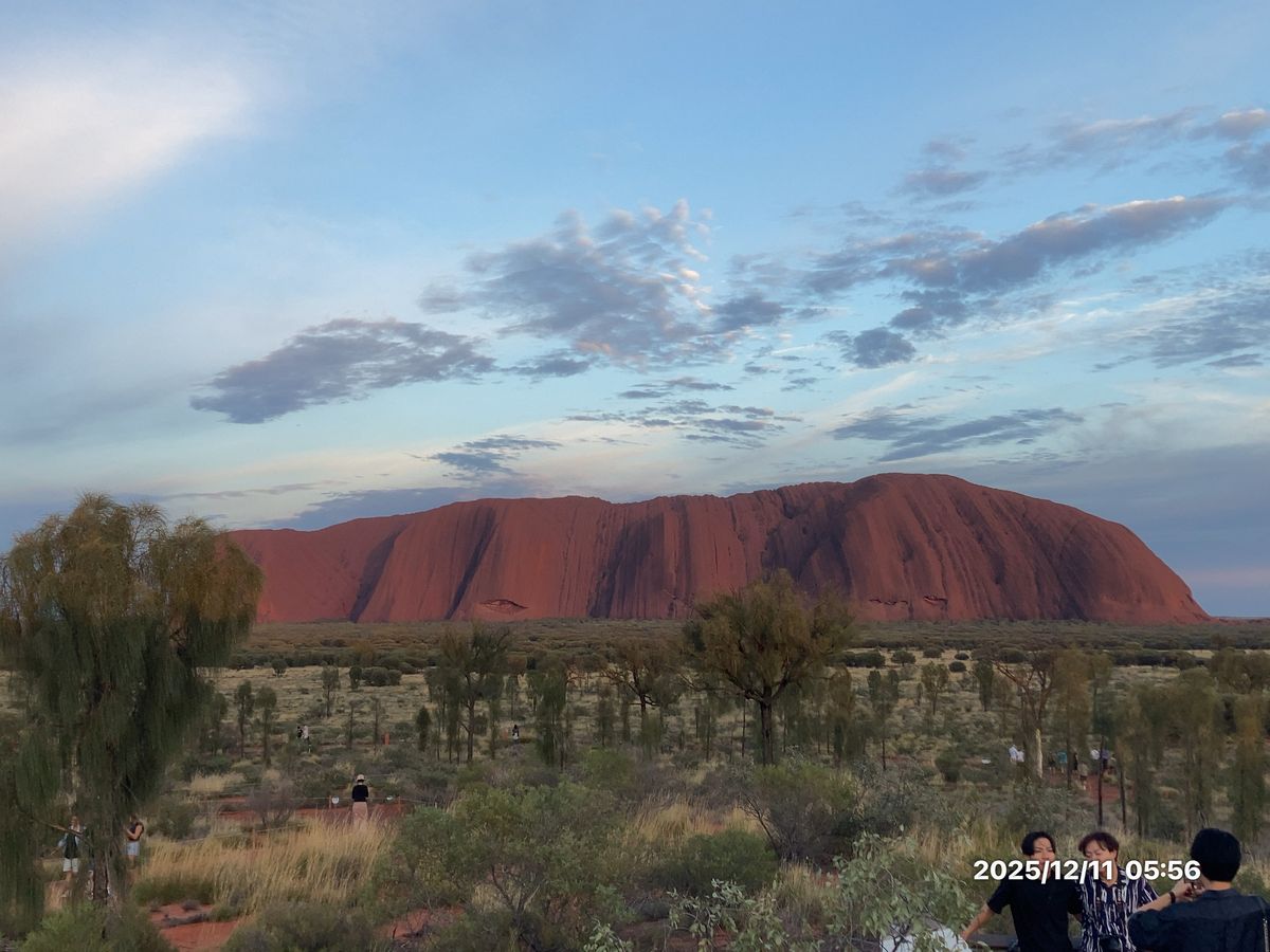まだ暗い中バスで移動、少し曇が出てましたが、徐々に明るくなっていく空とウルルを見ることが出来ました。