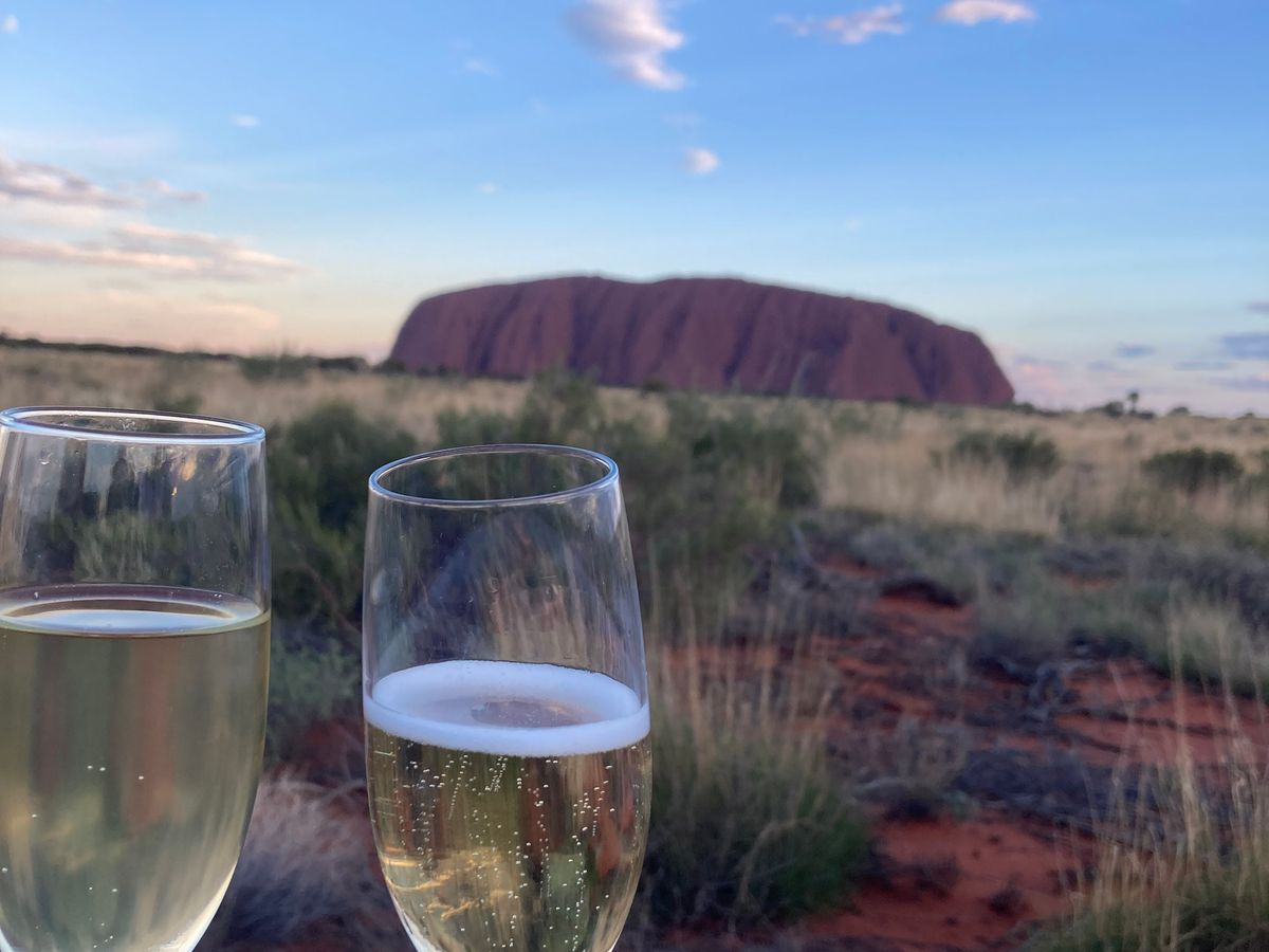 サンセットに照らされたウルルを見ながらのワインと語らい。最高でした!