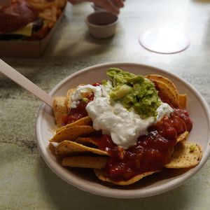 ごはん屋さんは少ししかなく、がっつりと食べるとなったら一箇所のみとなります。そこのお店ではnachos、唐揚げ丼、ハンバーガーなどがあり2000円ほどでした。