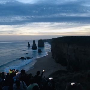 グレートオーシャンロードツアーを申し込むにあたって、日本語ガイドのツアーか、大型バスのツアーにするか非常に迷いました。説明を聞きたいが長時間マイクロバスの揺れに腰痛が出ないだろか?と。結果、音声ガイドがあれば要所で説明を受けれると思ってこのツアーを申し込みました。メルボルンについてからの予約確認に一苦労しました。印刷した予約確認書の電話番号は国番号から書いてあり現地入りしてからの番号ではありません。国番号を外し0を付けなければいけないのですね。当日は少し遅れて迎えのバスが来ました。集合場所には多くの人が集まっておりツアー別に並びます。日本語はほとんど通じません。現地集合なら不安だったかもと思いました。バスに乗るときに日本語音声ガイドをもらいました。係の人に従って席に着きます。日本人は私たちグループの他に1組いました。運転手さんがガイドをしながらバスは進みます。二階建てバスではなかったけれど座りごこちはよかったです。走っていると途中で音声ガイドが入ります。初めは4個(グループ4人で参加しました)とも正常に作動していましたが最初の二回だけ作動して後は聞こえなくなったり突然復活したり、また途中から、片耳だけしか聞こえない状態でした。音声ガイドがあるからこのツアーを選んだのに最後まで聞き取れないなんて、がっかりでした。運転手さんはとても感じのいい人で休憩時間もわかりやく説明してくれました。壮大な景色は圧巻です。バスの右側でも左側でもそれぞれ良いところがあり特に左側がいいとはかんじませんでした。ランチの時間もじゅうぶんにあり、のんびりと景色をたのしめました。帰りはホテル近くの駅前で降ろしてもらえました。1日がかりのツアーでした。次の日も観光をして元気に過ごせたので大型バスにして正解だったと思います。