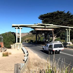 まずは灯台とグレートオーシャロードのゲート観光。砂浜におりる事もできて、釣りをしていたおじいさんと談笑したりとのんびり。