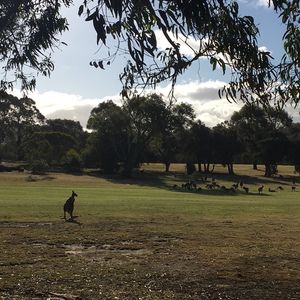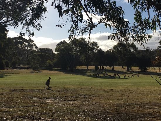 その後、野生のコアラやカンガルーを見に行きました。ゴルフ場の中に群れになっているカンガルーの横でゴルフをしている人がいてオーストリアならではの光景でした。帰りは希望の場所で降ろしてもらえ助かりました。