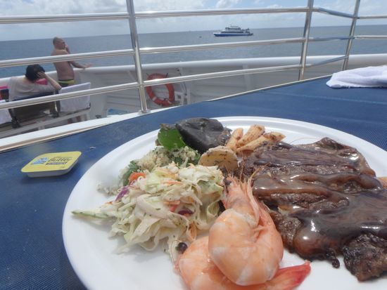 ステーキなどのホットフードは船内のバーベキューコンロで焼いているようで、温かくて美味しかったです。