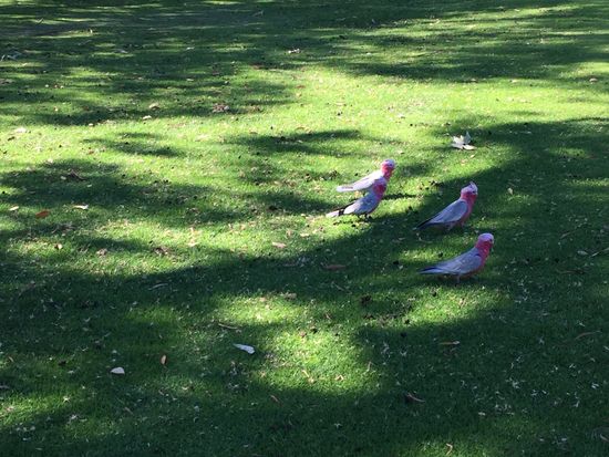 夜の散策では、白のオウムが真ん丸でねていました。かわいー。