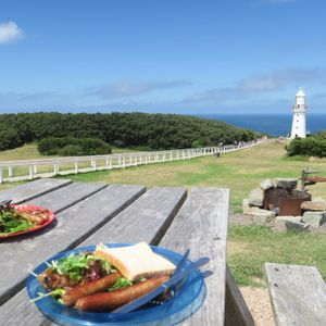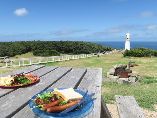 ランチは簡単なBBQ。灯台の見える丘で食べました。
