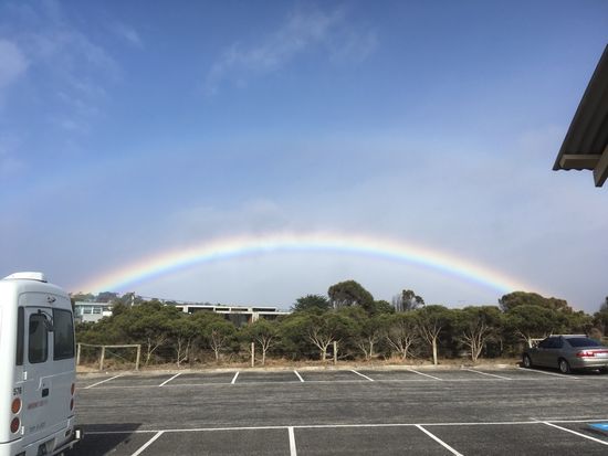 この日は、朝からにわか雨が頻繁に降るあいにくの天気でしたが、途中の休憩時にスタッフが準備してくれていたインスタントコーヒーとビスケットが、ことの外美味しく、その間に鮮やかな虹まで見えたので参加者全員のテンションが上がり、車中は楽しく賑やかな雰囲気でした。途中、グレートオーシャンロードを作った女性たち(モニュメント)を見て驚愕し、野生コアラと偶然にもカンガルーを見る機会に遭遇しました。その後は、ケープオトウェイで灯台観光とランチして、一路ポートキャンベルへ。ポートキャンベルては、このツアーの目的である12使徒の岩を見て、大自然のスケールの大きな雰囲気を体感してた旅の記憶に残る良い経験でした