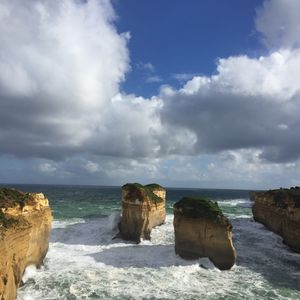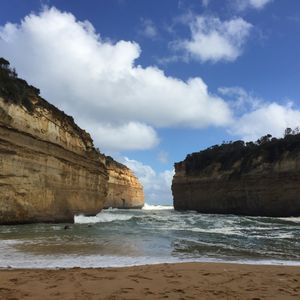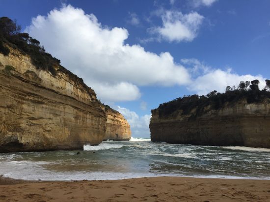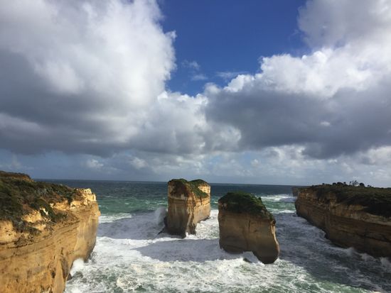今回初めてのメルボルン、友人は初めてのオーストラリアという事で、最初に2人で絶対に行きたいと思っていた、グレートオーシャンロードのツアーに参加しました。行ったのが真冬に当たる8月という事で、ダウンにマフラー、ヒートテックにムートンという完全装備で挑みました。結果、この格好で大正解。(とても寒かった上に、風も凄く雨がちらほらしていたので)バスの中は暖かかったです。トイレ休憩とモーニングティー(紅茶とビスケットの簡単なもの)を挟み、灯台に到着。そこでランチタイムはホットドックと野菜。男性には少し少ない量かもしれません。カフェがあったので、そこでモカを頼みました。とても美味しかったです。その後はとうとう目的のグレートオーシャンロード。これぞオーストラリアという広大な自然から作り出された岩、崖に感動しました。風がほんとにすごく、寒かったのですが、それも忘れてしまうほどの絶景でした。日本語ガイドのiPod付きを頼みましたが、それはありませんでした。しかし特に困ることはなかったです。行きも帰りも私達が泊まっていた所の近くまで送迎してくれました。