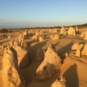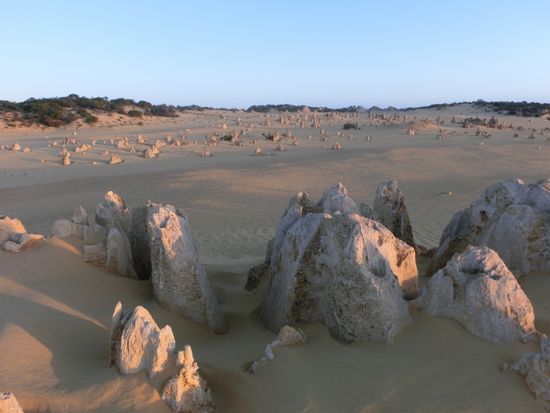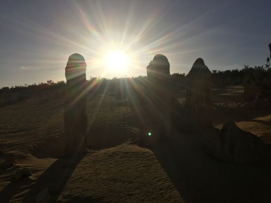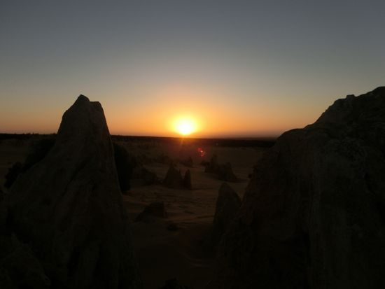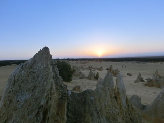 12月後半のパースは真夏と思っていましたが私達が行ったときは,たまたま寒かったです。ピナクルズの夕日は非常にきれいでした。夕日が沈む前と沈んだ後で空の空の色及び地上の様子が変わり,とても幻想的だったのが印象に残っています。風が強く,寒かったのでもっと厚着をしていけばと思いました。