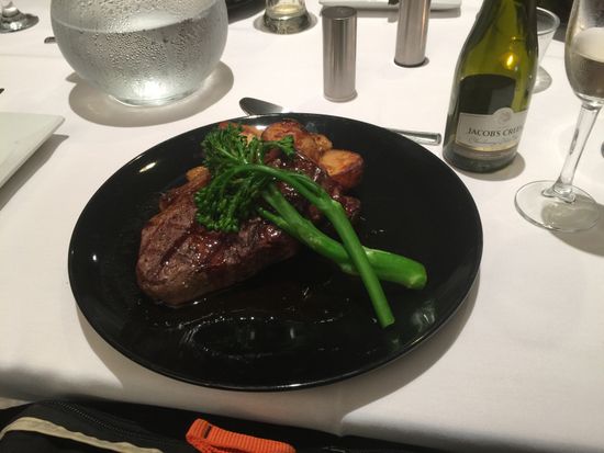 ピナクルズの夕日鑑賞を終え,夕食のため近くのレストランに行きました。ステーキ又は魚のコースを選ぶことができました。(飲み物は別料金で各自支払です。)お肉,魚ともに美味しかったです。他のツアー参加者も食事がこのようにおいしいのは比較的珍しいようなことを言っていました。外は風が強く,寒かったのでコース料理に含まれていたスープで体が温まり,お腹もいっぱいになりました。