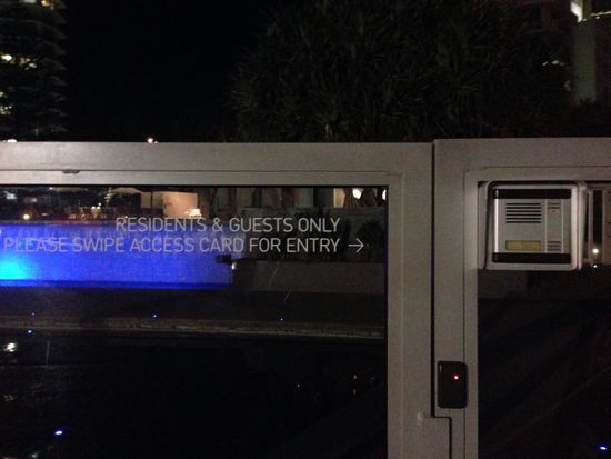 Q1タワーに行くと、隣の建物だと説明を受け、隣の建物に行くと、ここからは入れない。と。。またQ1タワーに戻り、連れて行ってもらいました。建物と建物の間のプールの脇の道で扉が二回あり鍵つき。Googleマップもわかりにくいし。
