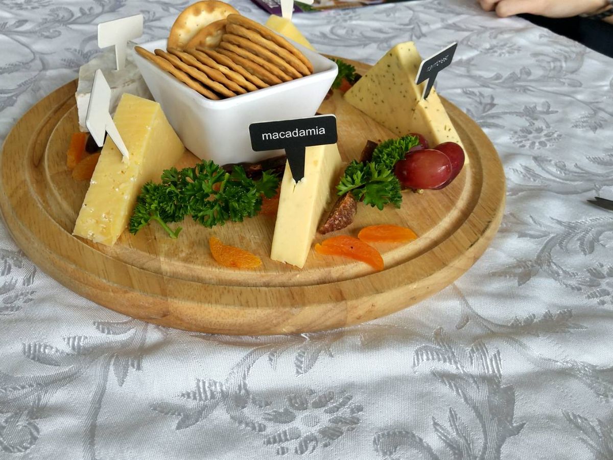 次は、農園の説明などのガイドをうけながら、チーズの食べ放題のカフェへ。飲みたい人は自分でグラスワインを買いに行きます。それほどチーズが美味しい。