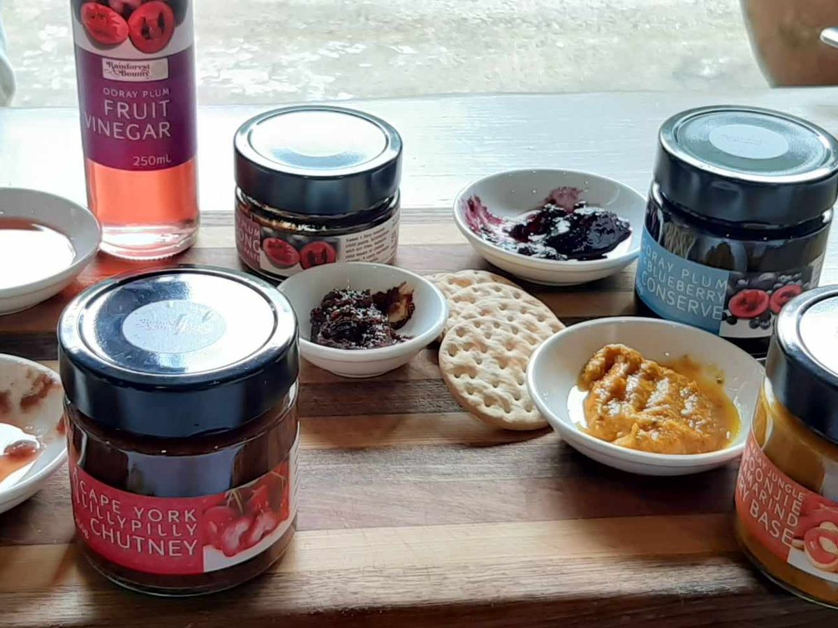 2か所目は「レインフォレストバウンティ」10:50頃に到着!写真映えする所に連れて行ってくれて、ひとしきり写真を撮り終えたら、テーブルに移動してジャム等を試食!果実ゴロゴロで美味♡