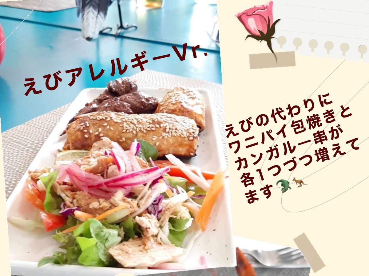 3か所目は「カモノハシパーク」11:50頃に到着!カモノハシの探索にみんなで向かいます☆残念ながらカモノハシに出会うことは出来ませんでしたが、珍しい木々を見ながらのウォーキングを満喫♪お昼は「えび&ワニウインナーパイ包み焼き&カンガルー肉の串焼き」ワンプレートランチ☆これが見た目以上に美味しかった♡カンガルー肉も柔らかいし、ワニパイめっちゃボリューミー♪テーブルにワインボトルがいっぱい並べてあって、どれでも飲み放題!地ビールを楽しみにしていたのですが、私には回ってこず、それだけが今も残念(笑) 写真のようにアレルギー対応もしてくれます。アルコールが飲めない主人にはノンアルコール飲料が用意されていました。