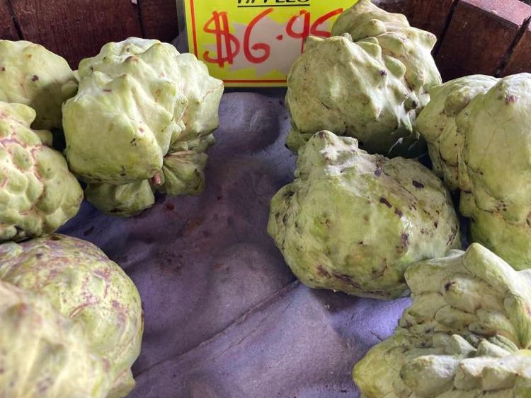 ストップ5、くだものとナッツの試食。カスタードアップルが絶品。
