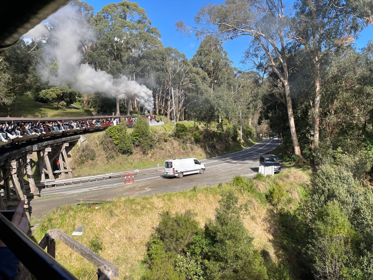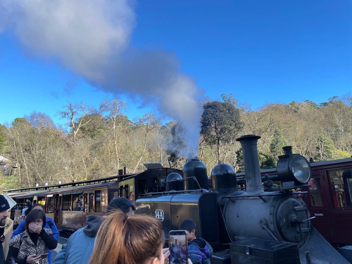 ダンデノン国立公園のグランツパークでモーニングティーとマフィンをいただき、蒸気機関車に乗車、お昼ご飯はPie In the Skyでミートパイを、さらに、ワイナリー2軒で試飲と、食べたり飲んだり、大満足の1日でした。食事も試飲もすべて料金に含まれていました。曜日により蒸気機関車のダイヤが異なるため、スケジュール上、パイのお店には立ち寄ることができないとのご連絡をVeltraよりいただいていましたが、当日はPie In the Skyに寄っていただき、ラッキーでした。パッフィンビリー鉄道は、退役軍人の方などがボランティアで運営されているそうで、働いているシニアの方々がとても生き生きと充実したセカンドライフを送っておられるように見え、羨ましく感じました。ワイナリーまでは、牧場に放牧されている牛たちを見ながら、広大なオーストラリアのドライブを楽しみました。ワイナリーは2軒ご案内いただき、それぞれ5種類くらい、合計で10種類くらい試飲し、帰りの車内ではすっかりいい気分で、ぐっすり寝てしまいました。日本人ガイドの方には、車の運転、レストランでの注文、蒸気機関車の終点まで先回りして待っていただいたり、ワインの説明をしていただいたり、また、長年メルボルンに住まわれている方ならではの現地の情報を教えていただいたりと、大変お世話になりました。ありがとうございました。