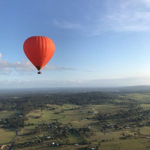 野生のカンガルーと日の出を楽しみにしていましたがどちらも叶わず、曇空で海も霞んでいたのが残念でした。それでも木の上を通過したり、緑豊かな大地を真上から見る体験ができてとても有意義でした。最初はちょっと怖かったけど、怖い時はカゴの内側に入れば大丈夫です。乗るときにカゴを跨ぐのでスカートでは行かない方が良いです。ワイナリーがすごく素敵で食事も美味しかったです。ちょうど紫のジャカランダの花が満開でとても綺麗でした。
