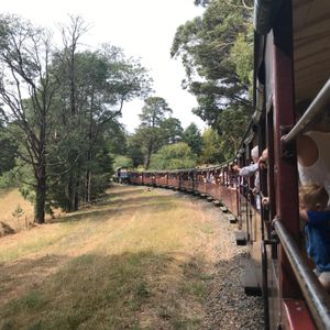 牛や羊が放牧されている広々とした景色を眺めながらのドライブを楽しんでいるとチョコレートファクトリーに到着。お土産になりそうなチョコレートがたくさんありました。その後、ファーガソンワイナリーとスパークリングワインで有名なドメインシャドンシャンパンファクトリーの2箇所でワインの試飲を堪能しました。ガイドさんがソムリエの資格を持っている方だったので、いろいろなことを教えてくれました(ワインの飲みすぎに注意!)。ワイン以外にもオーストラリアの生活事情のお話など楽しかったです。昼食のローストビーフは美味しかったです。サラダはビュッフェでローストビーフもお替り自由でした(ワインも)。可愛い看板犬もいましたよ。蒸気機関車は約30分の乗車です。名物の足を出すスタイルは事故があったため禁止になってましたが、森林の中を爽やかな風を感じながらのんびりとした走行なので癒されました。