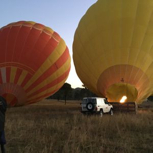 当日の朝のpick upは時間通りで、英語に不安があっても日本語も多少理解できる爽やかな運転手さんがお迎えに来てくれたので、とっても安心して参加でしました。1時間半程、車に揺られ着いた先にはすでに熱気球の用意がされていたので、乗る位置を振り分けられながらもすんなりとすぐ気球に乗り込みました。ただ、私達の参加した日は7月だったので現地の早朝はとても寒く、ヒートテックやタイツ、ウルトラライトダウン等で防寒した方が良いです。気球の炎が出てる時はつま先以外暖かいのですが、消えてる時は全身とても寒いです。空高く上がった熱気球から眺める景色はとてもとても雄大で美しく、登る朝日を眺めるのも、野生の動物を見つけたのも最高の感動でした!気球内では自由にケータイで写真を撮影出来るので、想い出にもずっと残せて良いと思います。その後のワイナリーでの朝食も最高で、シャンパンで迎えてくれて暖かく種類豊富な朝ごはんとフレッシュジュースやコーヒー、紅茶もあり、美味しくて女性の私も3回おかわりしてしまいました。午前中にはホテルに戻っていましたが、興奮冷めやらず、他の土地でも熱気球は経験有りますが、オーストラリアの広大な自然溢れる景色、地球を感じるのに、とっても貴重な体験となりました。ぜひ参加して見てほしいアクティビティでした!