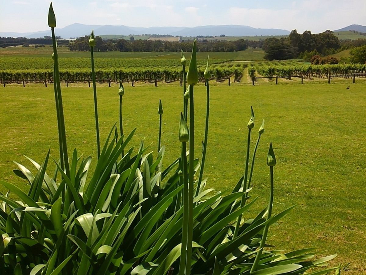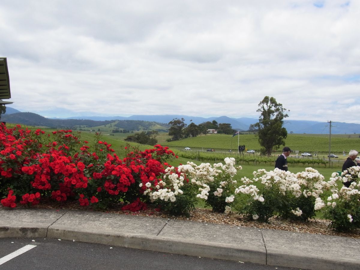 最初のワイナリーへはメルボルンの中心地から一時間超のドライブ。途中、曲がりくねった山道もあるので、飲食もあることだし、酔い止め飲んだほうが安心。当日は晴天で、ワイナリー周辺の山道は自然が美しかった。