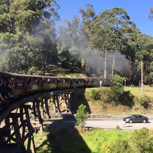 当日お迎えの車が来ると、なんと参加者は私たち家族のみ。バンを一台貸し切り状態で、なんともラッキーな気分で出発!ドライバー兼ガイドさんは現地在住が長い方で、オーストラリアやメルボルンの現地情報を色々と聞くことができ、とても興味深かったです!パッフィンビリーの蒸気機関車は、森の中を窓の外へ足を投げ出した状態で走り抜け、なんとも爽快な気分でした。ワイナリーはどこまでも続く広大な景色に圧倒され、ワインが飲めなくても十分に楽しめました。天気も良く、時間的な余裕も十分にあり、のんびりと1日ツアーに参加することができました。