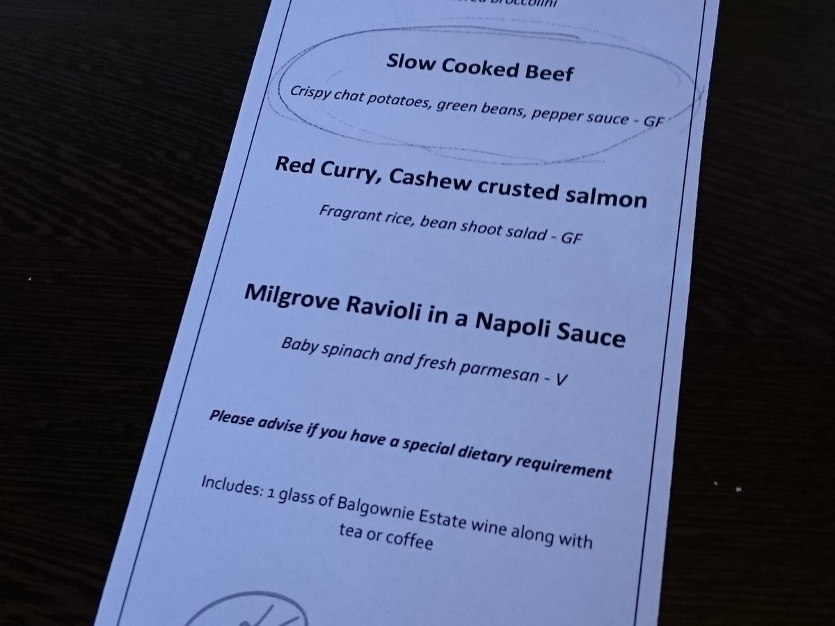 そして昼食がついてくるのですが、これがまたおいしい。私が参加した時はチキン、ビーフ、サーモン、ラビオリから選択でした。