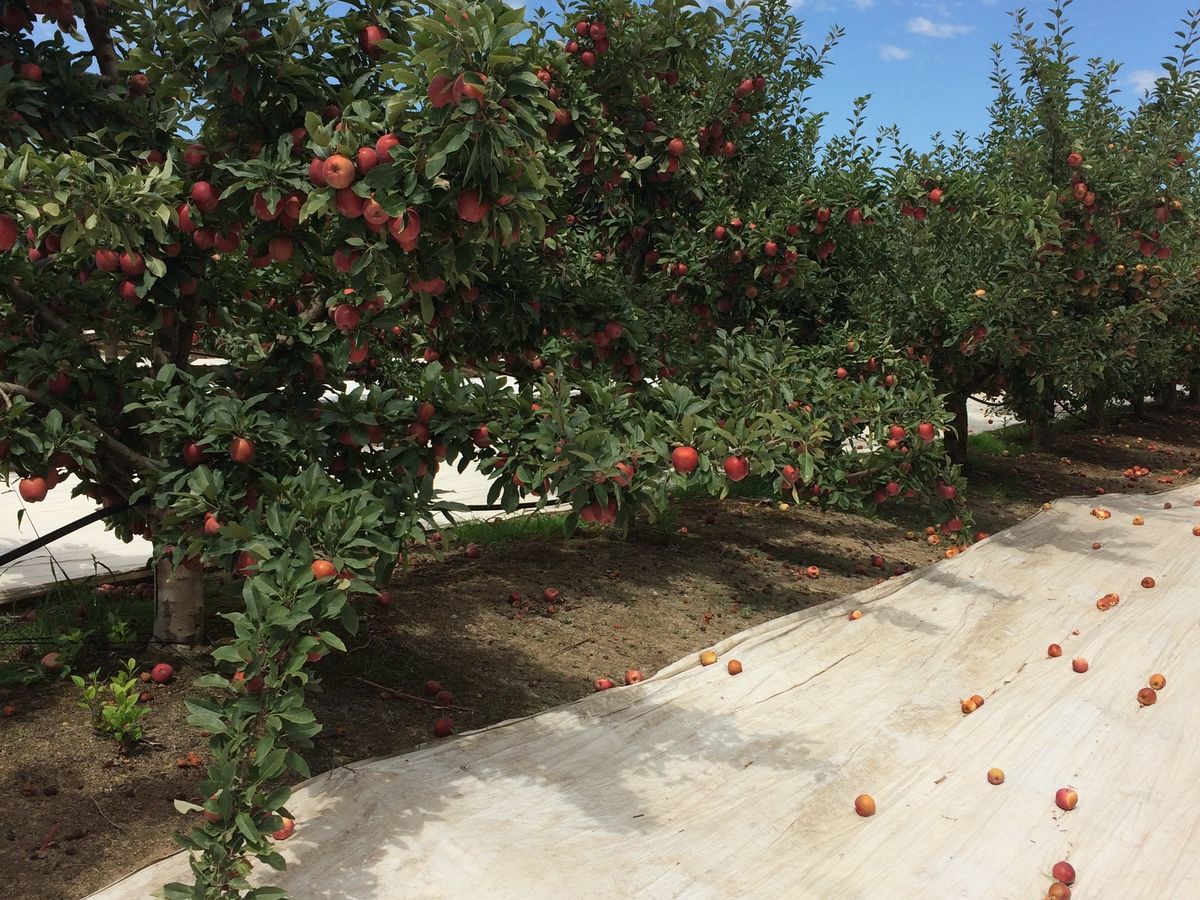 1軒めに行ったワイナリーはこじんまりしていましたが、5種類くらい試飲させてくれました。私は1杯め以降は外をぶらぶら・・・。りんご畑が回りにあって、あとから来た中国人の団体ツアーが、りんご畑にはいって写真取ったり、さらにはりんごをもぎとったりしていて・・・、子供もたくさんいて、なんでワイナリーツアーに子供がこんなに来ているの?、っていう感じでした。