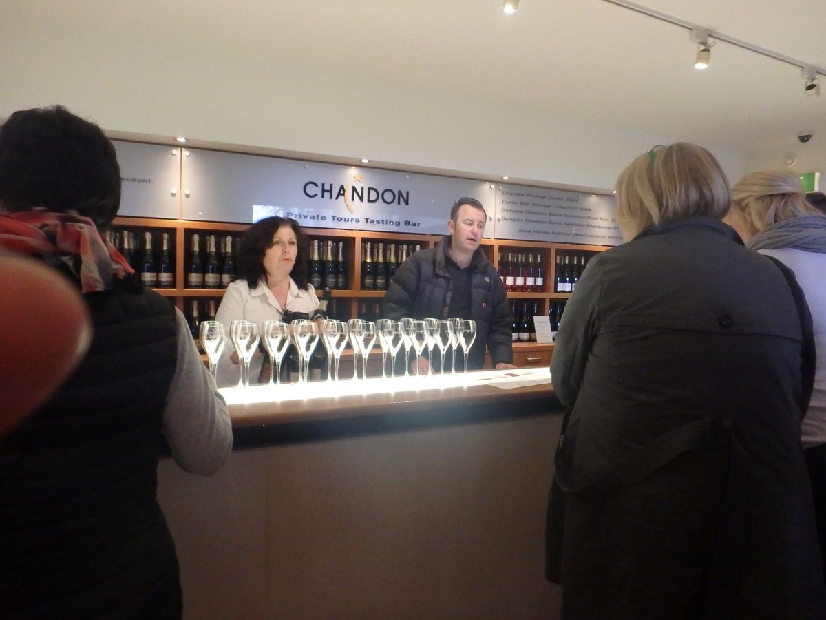 初めてのメルボルン。朝方天気があまりよくなく雨が降るかもしれないという不安の中のツアーでした。運転手さん兼ツアーガイドの方のトークがとても面白く、バスで市内からヤラバレーまであっという間でした。1組ご年配の日本人のご夫婦がいたのですが、運転手さんがとても気を使っていて、日本語のiPodも渡されていました。ワイナリーについてからは、テイスティングの仕方やブドウの品種などの目からウロコな情報を教えてくださったりとても楽しかったです。ランチも事前にバスの中でメニューを選べ、ワインとともにいただきました。天気も回復して素晴らしい景色のなかのランチをいただけました。その後、もう一つのワイナリーへいった後いよいよドメインシャンドン!チーズのおつまみと、4種類のシャンドンなかからすきなものを選べました。外の景色も抜群で、本当にいい体験が出来たと思います。お酒があまり得意ではない妹といったのですが、彼女も大満足だったようです。