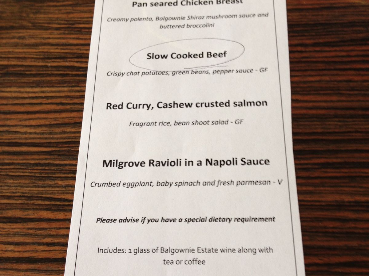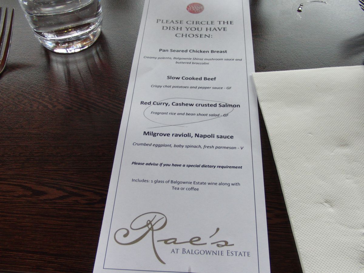 バルゴウニー・エステートで、昼食を取りましたが、素敵なレストランで、3種類?の中から選ぶ方式です。ワインも1杯ついています。