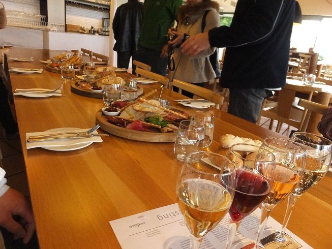 3件目に訪れたその日最大のワイナリーであるシャンドンは圧倒的に規模大きく、観光客の賑わいも含め、さすがの風格を感じました。ワインを飲みながら軽食を食べられるレストランがあり、そこでおいしい昼食です。ワインにピッタリの付け合せとパンで、種類と量が豊富で、気が付けばすっかり満腹のほろ酔い状態です。