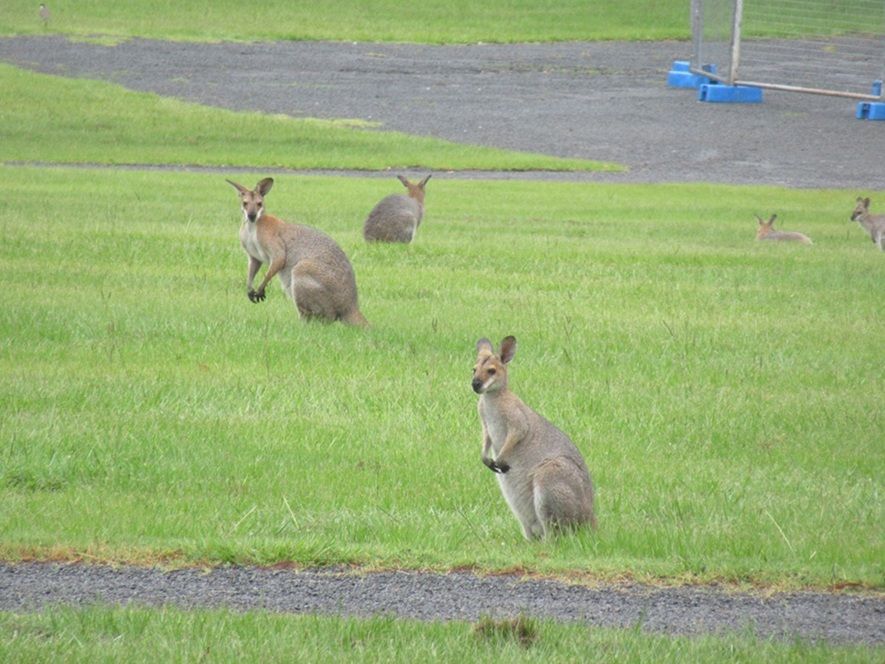 小雨がぱらつく天気でしたが、このような天気の方がワラビーが出没するそうで、近くの広場には沢山のワラビーが見られてラッキーでした。