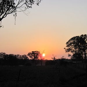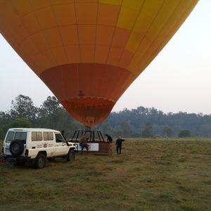 朝は4:10ホテルピックアップとすごく早く、起きた時には雨が降っていましたが、出発の時にはやんでいて、気球の待つラミントン国立公園についた時には、キレイな朝日が昇り始めていました。