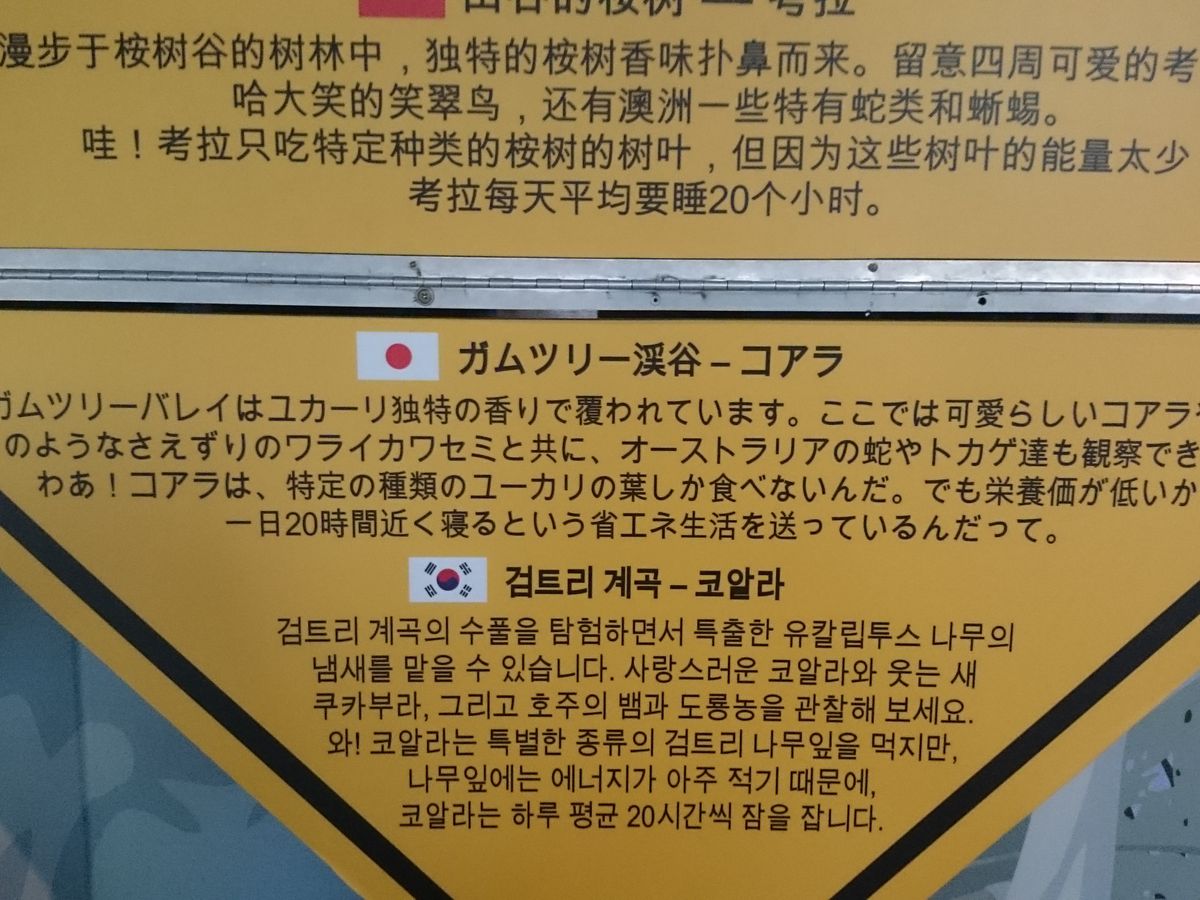 初日にタワー、翌日午前中にアクアリウムとワイルドパーク。後者2つは隣合わせなので、ラクチン。広さも狭いながらコンパクトでちょうどいいです。じっくりコアラと触れ合いたい方には、ここでは抱っこはできませんので他の施設にして下さい。