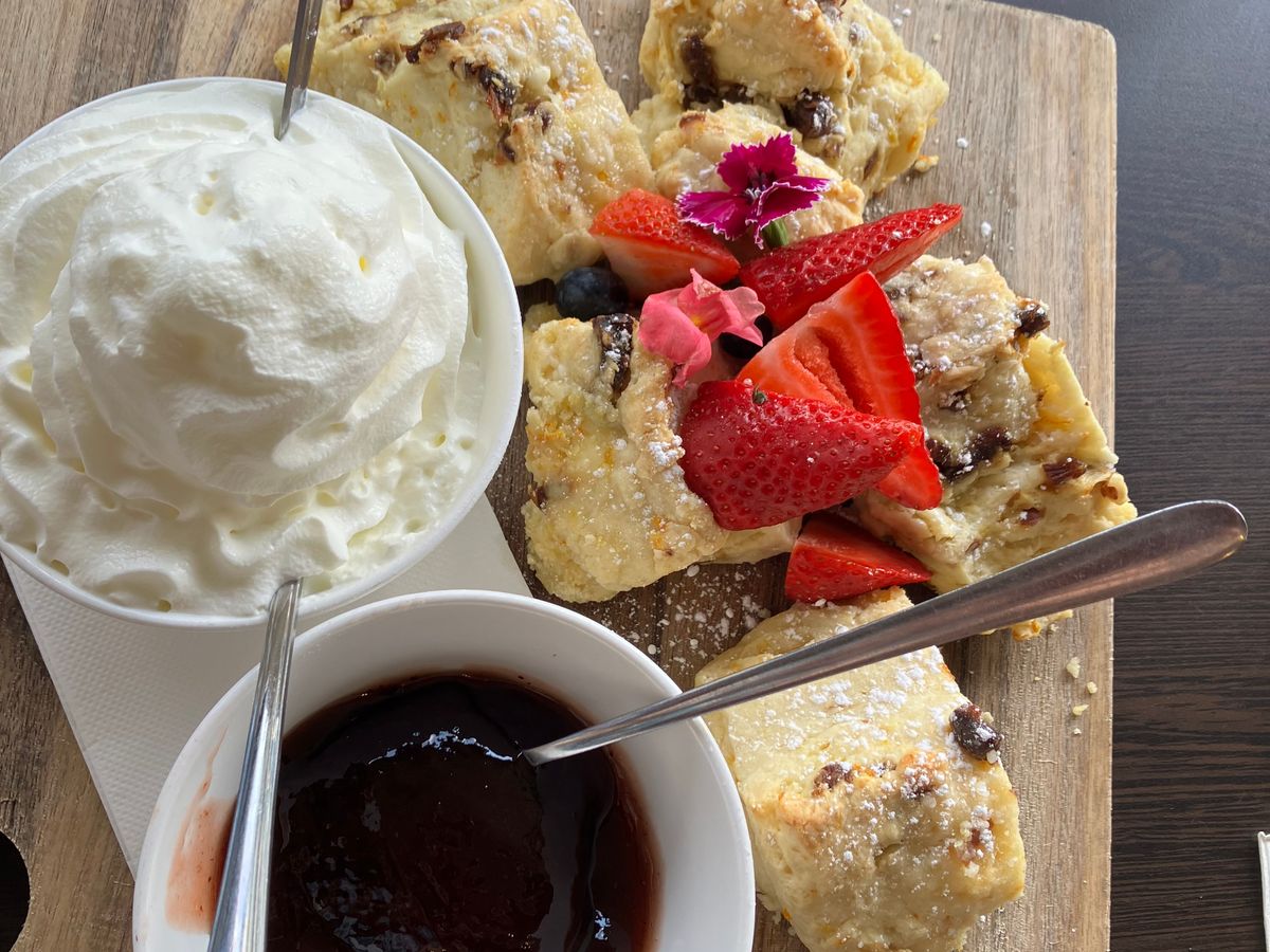 その後ティータイムに可愛いカフェでスコーンをいただきました飲み物は好きなものを注文できました。私達はレモネードにしました。植物園では固有種の見たこともない花や大きな木が所狭しとありました