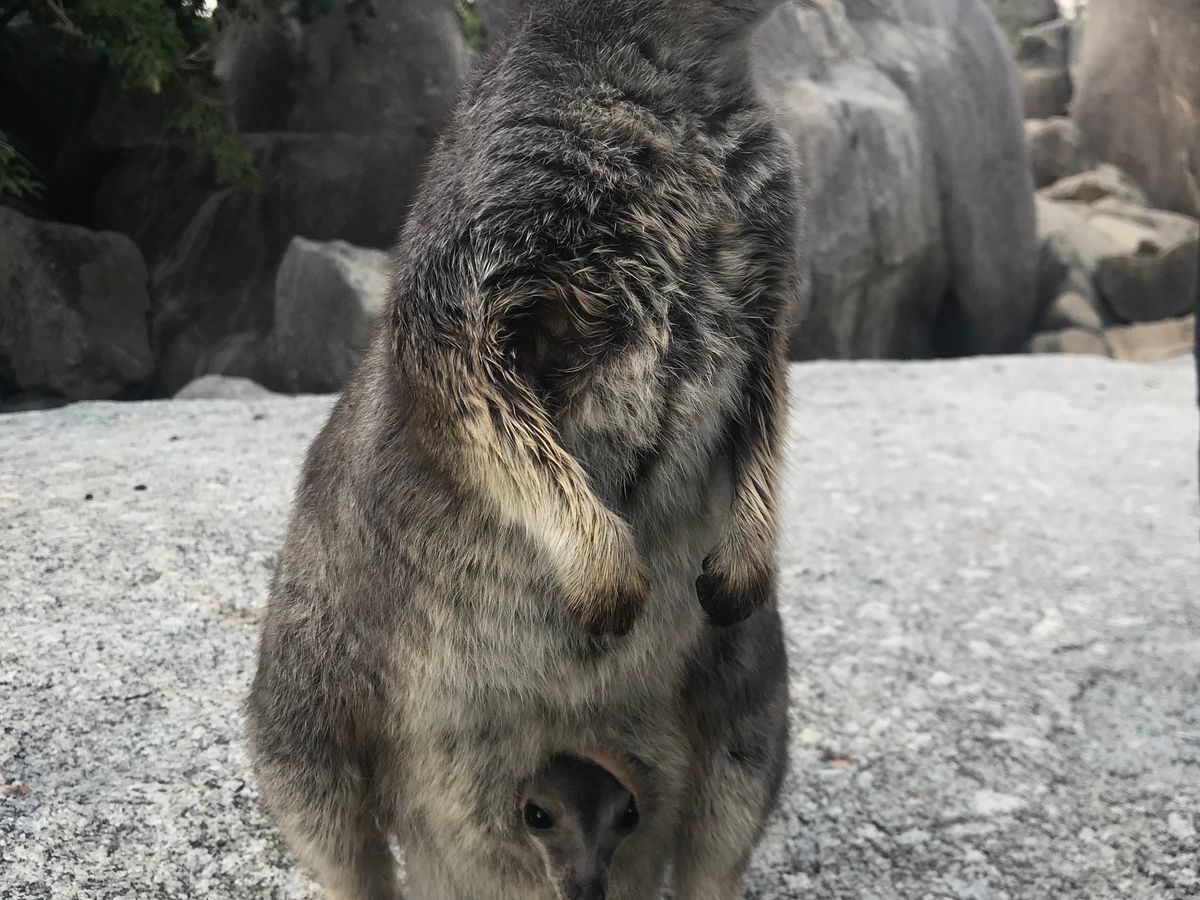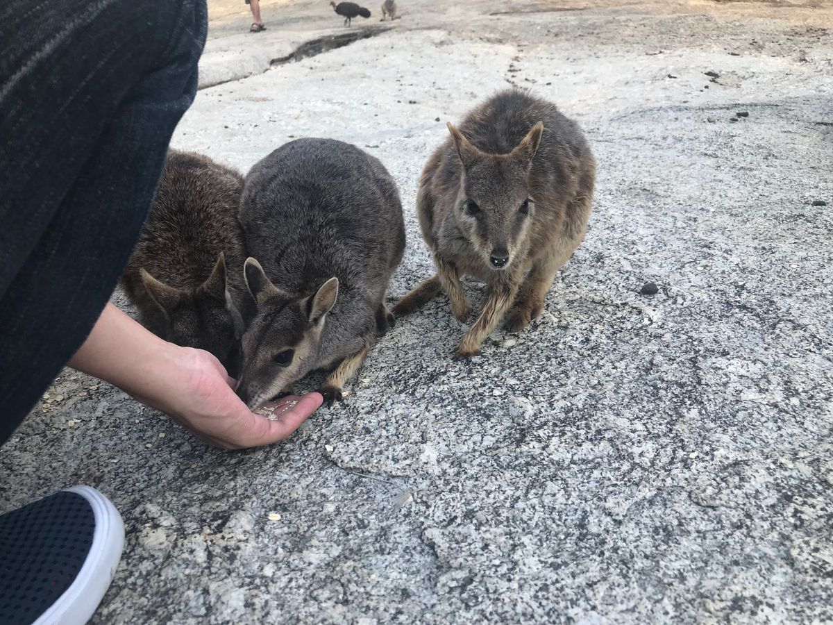 元々ツアーには入っていませんでしたが、時間を延長してもらいロックワラビーにえさやりができるように変更してもらいました。