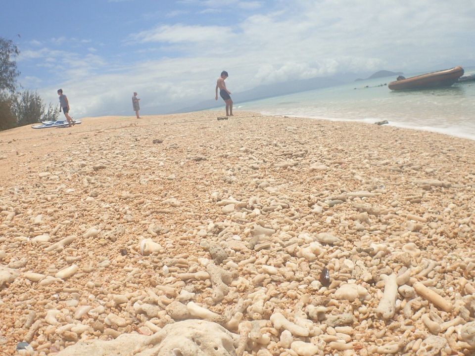 船から下りたら、青い海、青い空、白い砂浜、と最高のロケーションに家族一同感動の嵐でした。