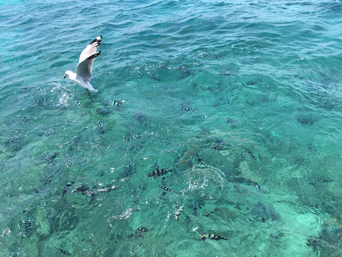 世界遺産グリーン島の海はさすがで、とても綺麗でした。シュノーケルしましたが、浅瀬でも魚が見られます。